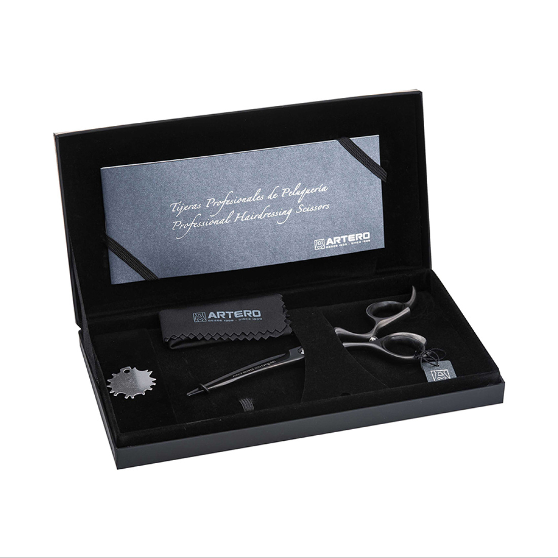 Tijera de peluquería de alta calidad con recubrimiento de Titanio negro forjado.